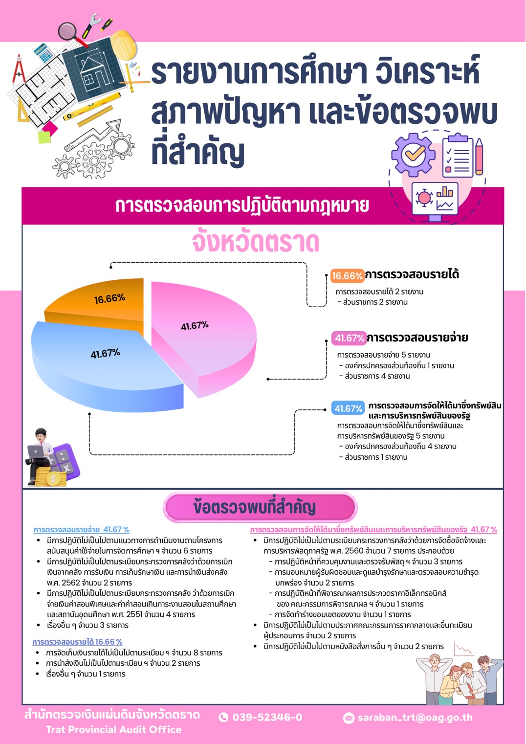 รายงานการศึกษา วิเคราะห์สภาพปัญหา และข้อตรวจพบที่สำคัญ ของการตรวจสอบการปฏิบัติตามกฎหมาย จังหวัดตราดการตรวจสอบการปฏิบัติตามกฎหมาย, กิจกรรมประชาสัมพันธ์, ข่าวที่น่าสนใจ, ข่าวประชาสัมพันธ์, ผลการตรวจสอบของ สตจ., อินโฟกราฟิกพฤศจิกายน 19, 2025พฤศจิกายน 19, 2025 Post Views: 284